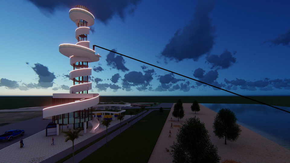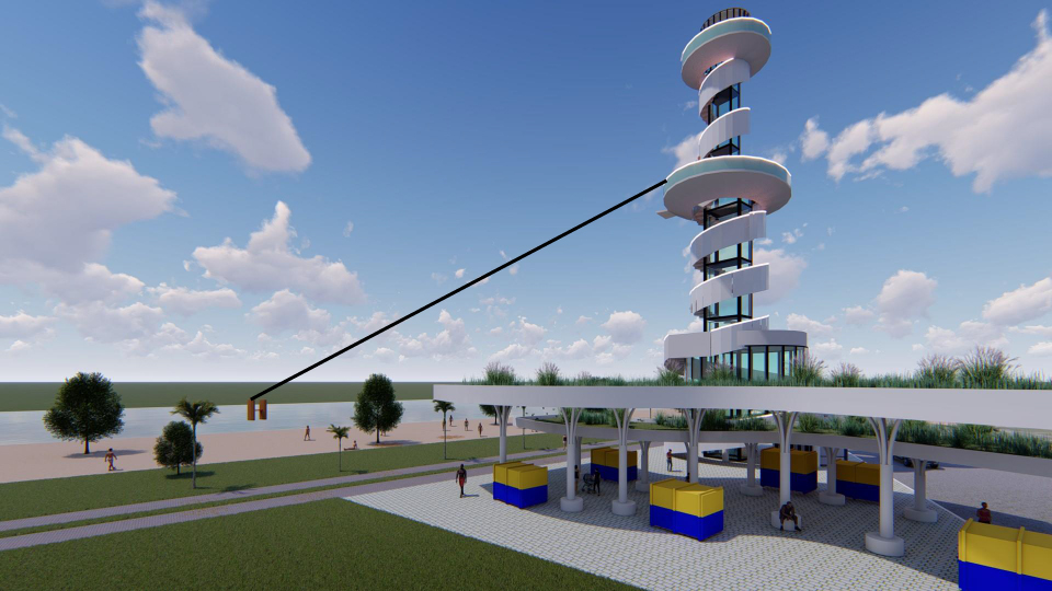 O Mirante teria mais de 40 metros de altura, possibilitando a visualização de toda a orla e cidade. Três andares do Mirante seriam dedicados a restaurantes e outros empreendimentos vinculados ao trade turístico lourenciano.