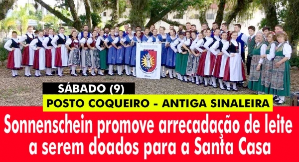 O Grupo de Danças Folclóricas Alemãs Sonnenschein promove neste sábado (9) arrecadação de leite que serão doados para a Santa Casa de São Lourenço do Sul.
