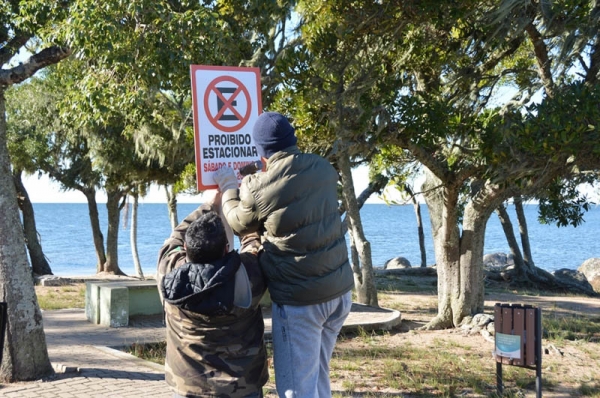 A equipe do Departamento de Trânsito da Secretaria de Obras e Urbanismo iniciou na manhã desta sexta-feira (26), a instalação das placas que alertam para a proibição de estacionamento na orla das praias de São Lourenço do Sul aos sábados e domingos das 15h às 20h. Desta forma, o estacionamento irregular é passível de multa.