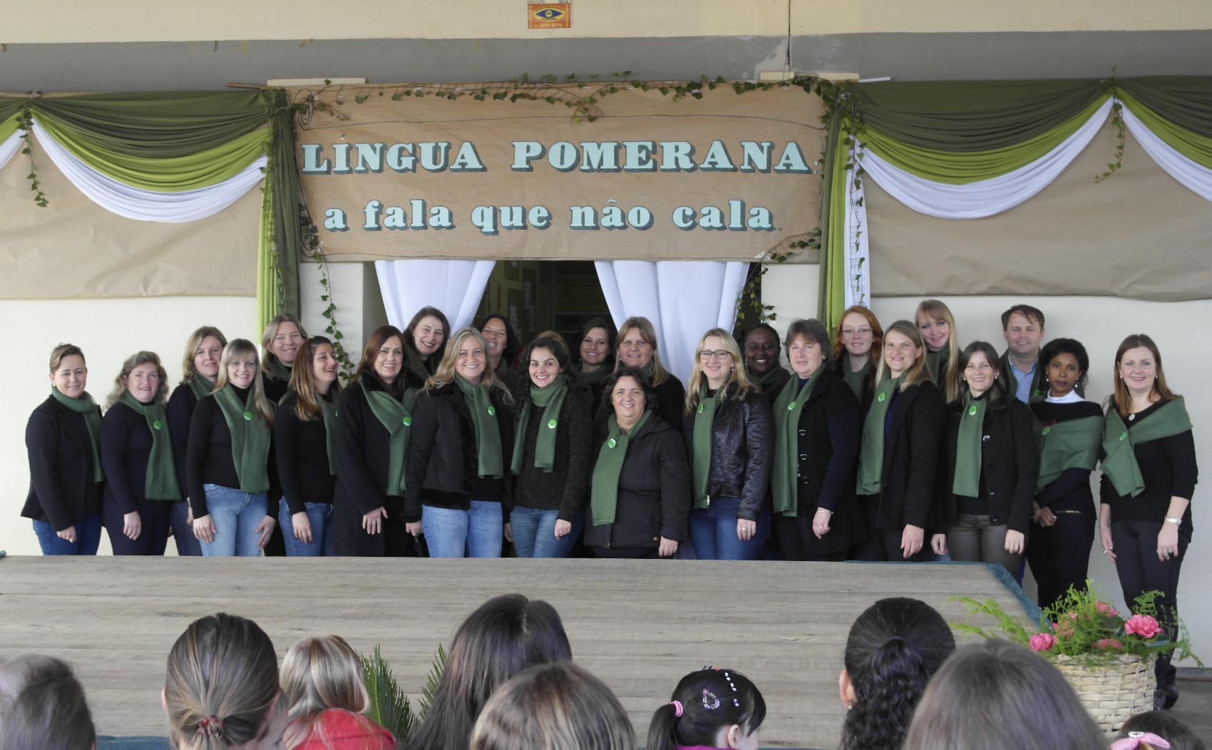 * Comunidades pomeranas do Brasil estarão se encontrando no IV PomerBr durante os dias 21, 22 e 23 de agosto, em Espigão do Oeste (RO). Nesse evento, o trabalho desenvolvido na EMEF Martinho Lutero sobre a língua pomerana será apresentado pela Profª Cristiane Siefert Neuenfeldt que, juntamente com a Profª Ileia Treichel Krüger, iniciou o trabalho de escrita na comunidade de Santa Augusta onde está localizada a escola. A proposta foi fruto de uma caminhada que iniciou com a realização do primeiro PomerBr em São Lourenço do Sul no ano de 2011, quando professores do Espírito Santo relataram sua experiência com a escrita da língua pomerana tendo como referência o Dicionário Enciclopédico Pomerano – Português (2006) do linguista Ismael Tressmann. Em 2014, frente à visita da Coordenadora Pedagogica, Profª Lilia Jonat Stein de Domingos Martins (ES) na escola, a Equipe Diretiva liderada pela Profª Leni Thurow Karnopp, propôs a realização uma oficina semanal para os alunos do anos iniciais. Assim, a comunidade pode ver valorizada a língua materna que, até então, mantinha-se viva apenas na oralidade, passada de geração em geração. O trabalho ganhou consistência e foi tema do Projeto POMERVIDA que vem permeando a proposta pedagógica da escola através da valorização da cultura local. Intitulado “Língua Pomerana – a fala que não cala”. O evento foi realizado em 18 de julho e mobilizou toda a comunidade escolar quando aconteceram apresentações de teatro, poesias, músicas, dramatizações, dança, exibição do curta-metragem “A fala que não calou: tentativa de silenciamento da Língua Pomerana” produzido pelos alunos e do “Mate do Pomerano” filmado também com alunos além das exposições de trabalhos de língua escrita e de pesquisa da memória, história e tradições da cultura pomerana. Durante a festa, também foram expostos os banners "Saberes e Sabores da Colônia" da antropóloga Renata Menasche. No final, foi servido o mocotó organizado pela APM e Conselho Escolar. A escola, aproveitando o espaço aqui cedido, parabeniza todos os alunos, professores, funcionários e pais pelo sucesso do evento e agradecendo aos colaboradores e parceiros deste projeto, à Profª Fernada Borck (SMECD) e ao Prof. Carmo Thum (Núcleo Educamemória -FURG) por acreditarem em nosso trabalho, no nosso compromisso com a comunidade local e com a valorização da cultura pomerana no município e na região sul. Registros do Projeto POMERVIDA – Edição 2015: Língua Pomerana – a fala que não cala.