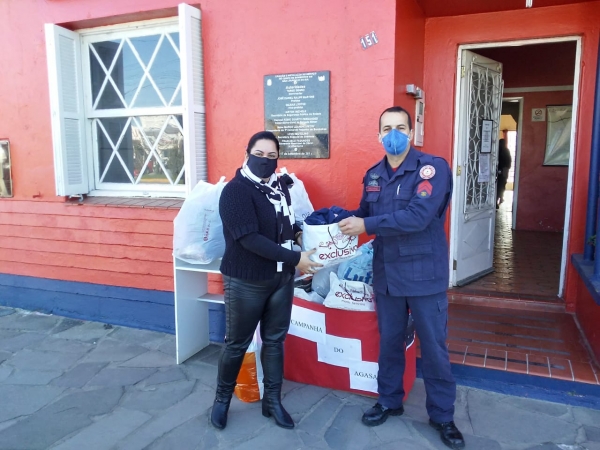 O CBMRS, através do 2° Pelotão de Bombeiro Militar de São Lourenço do Sul, continua firme na campanha de agasalho 2020, na data de hoje (21/08), entregamos mais 200(duzentas) peças de agasalhos para a Defesa Civil do Município ( Sra Janaína).