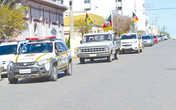 * TENDO EM VISTA a pandemia do coronavírus a tradicional cavalgada de 20 de Setembro em São Lourenço do Sul foram realizadas carreatas pela cidade (na foto piquete Pelego Preto) pelas ruas da cidade.