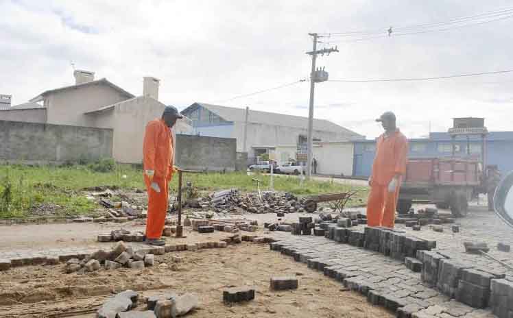 * FUNCIONÁRIOS da Prefeitura Municipal agora estão reformando o calçamento da rua Mariz e Barros, onde a empresa Portosan havia instalado encanamento de esgoto e deixado a rua toda esburacada. A população se indignou. O Poder Público Municipal decidiu assumir o encargo de recompor o calçamento, com o objetivo de permitir o fluxo normal de veículos. A grande indignação é com a postura da referida empresa terceirizada, sem compromissos e responsabilidade. Na noite da última terça-feira, moradores da rua Alm. Barroso, esquina com a rua Duque de Caxias, reuniram-se em via pública para debater o estado precário do calçamento daquele local.