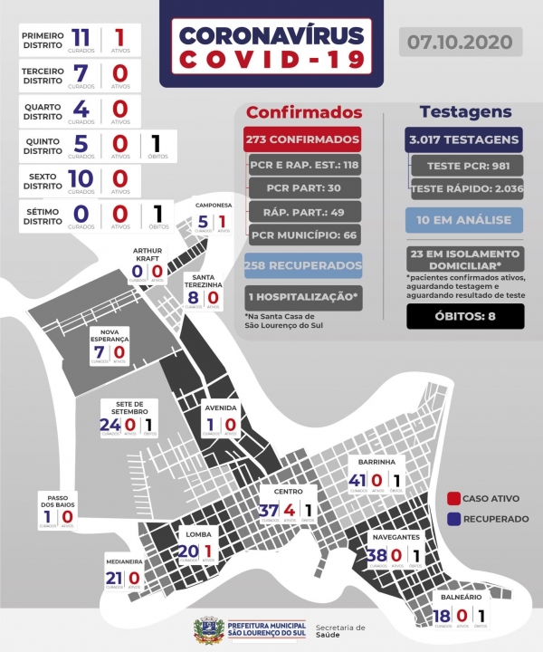 São Lourenço do Sul não registra novos casos de COVID-19 nesta quarta-feira (07).