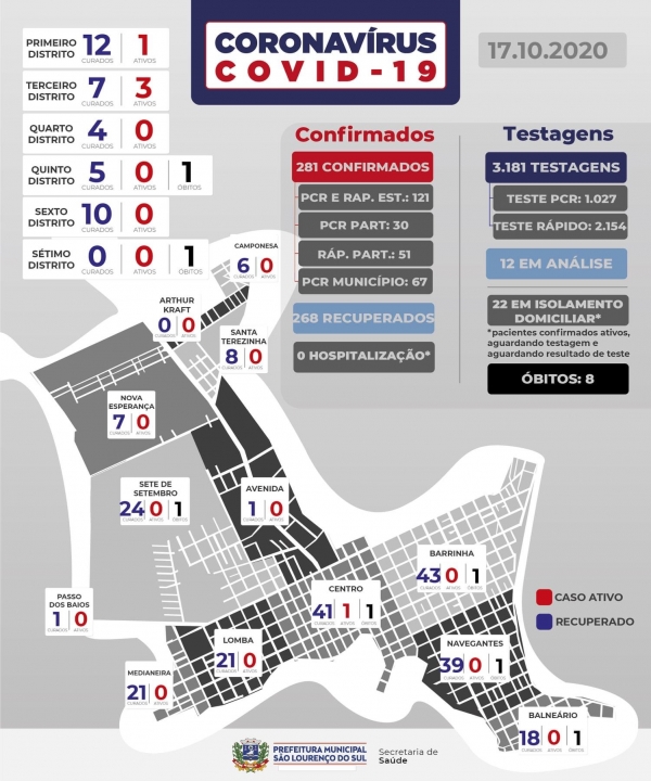 São Lourenço do Sul não registra novos casos de COVID-19 neste sábado (17).