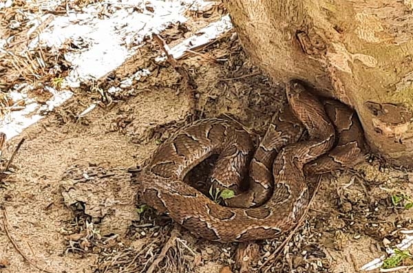 Na manhã desta segunda-feira (23) a moradora de São Lourenço do Sul Eloisa Bergmann Heiden, postou em sua rede social a imagem de uma cobra que encontrou em sua pedalada matinal próximo à ciclovia da Barrinha, entre as ruas General Osório e Tamandaré.. Ela fez um alerta à população sobre o animal que se encontra na orla, embaixo de uma árvore. Sem saber ainda de que espécie se trata, chamou o Corpo de Bombeiros para que fosse tomada as providências e alertado os órgãos ambientais para descobrir a espécie e se é venenosa.