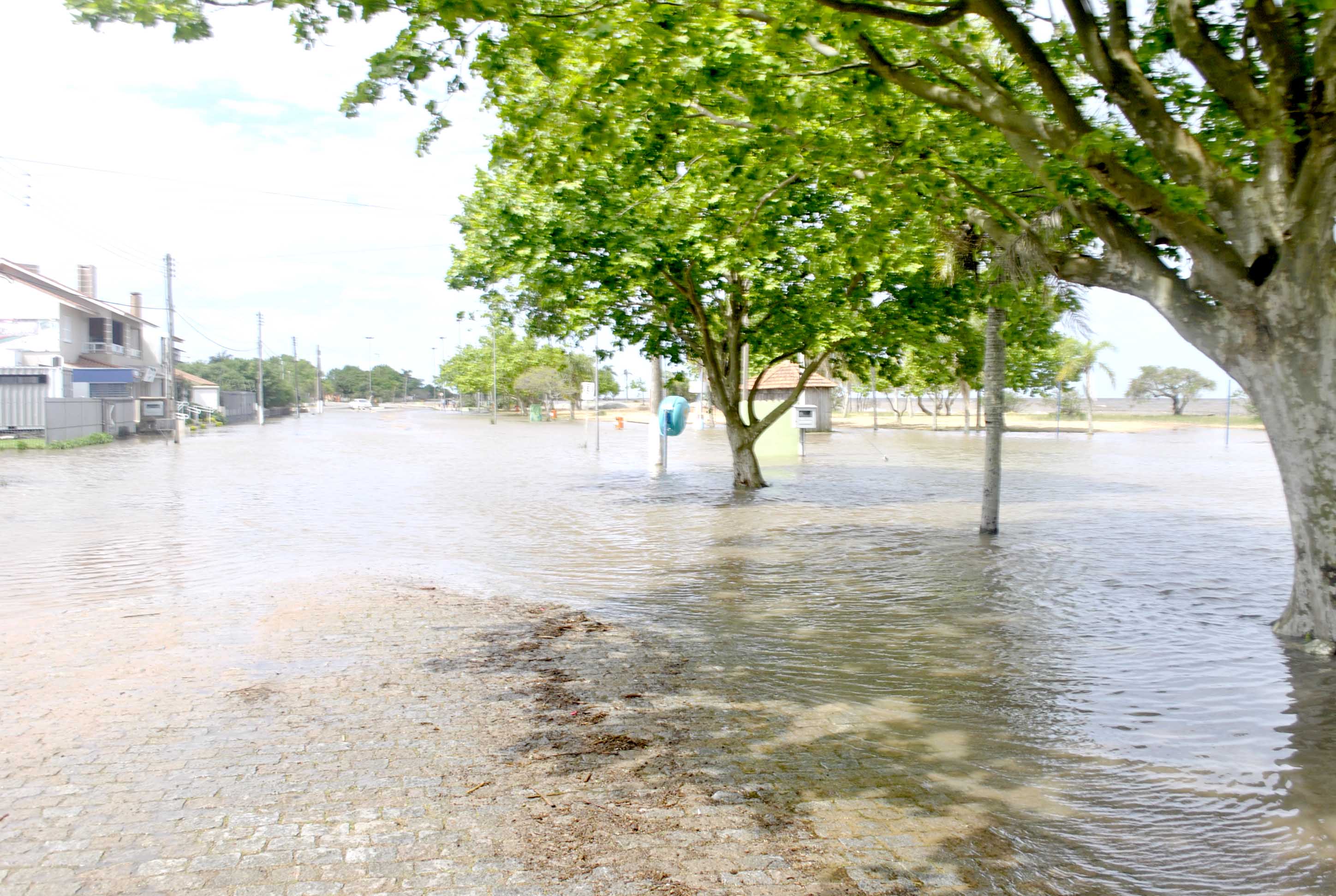 As fortes chuvas que atingem o estado desde a quarta-feira (07) elevaram o nível de diversos rios, aumentando o volume de água na Lagoa dos Patos.