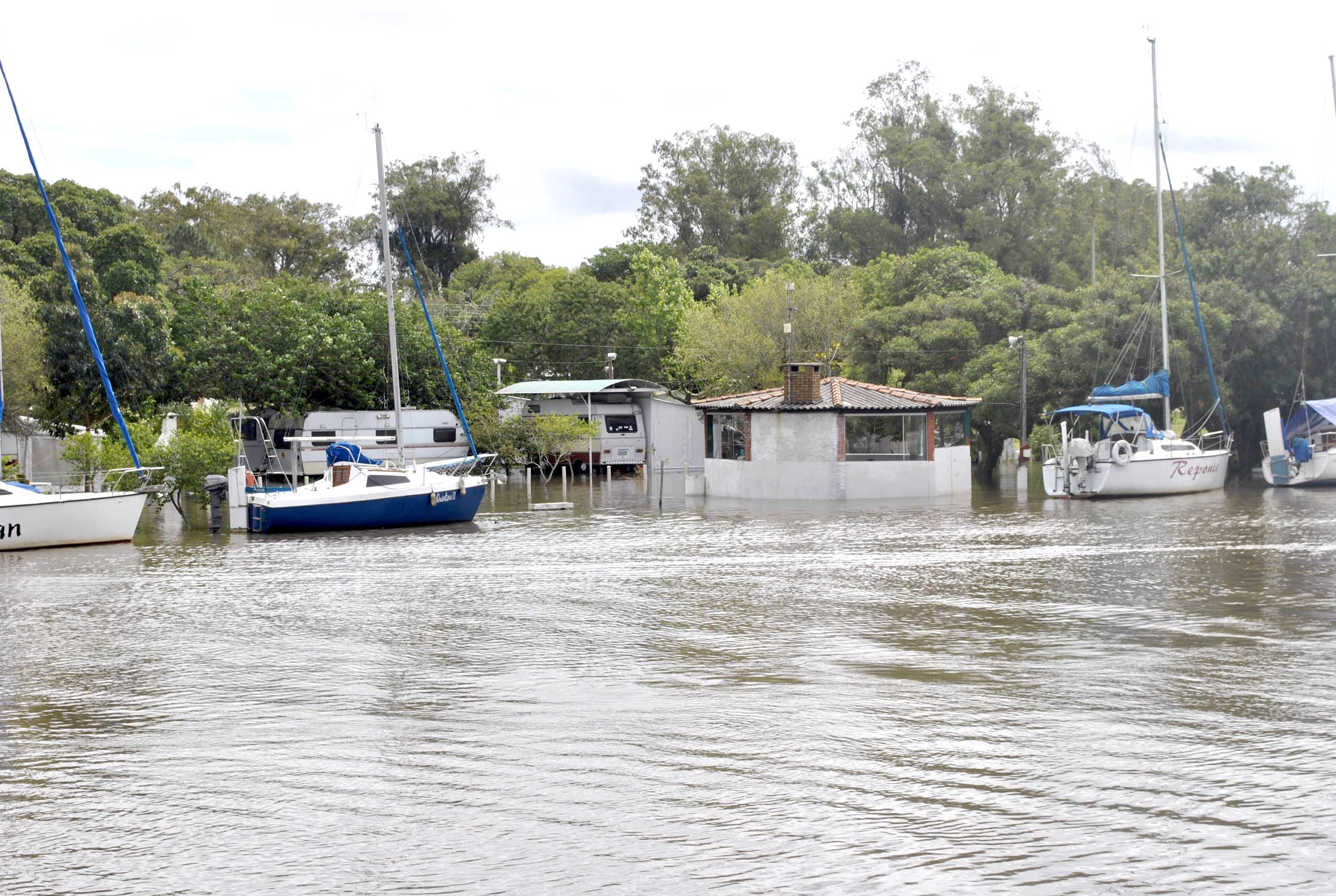 O nível do Arroio também subiu um pouco e avançou sobre o trapiche do Iate clube atingindo alguns trailers que ocupam o local. As fotos foram feitas às 14h desta quarta-feira (14)