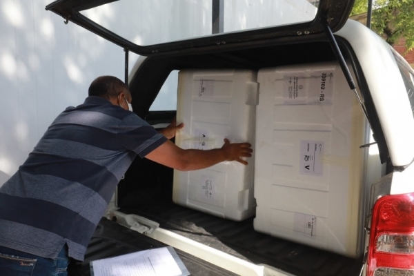 Chegaram nesta sexta-feira (30) nas cidades da Zona Sul, uma nova remessa da vacina contra Covid-19. Os imunizantes da Astrazeneca/Oxford serão destinados à primeira dose do grupo prioritário com idades entre 60 e 61 anos, além de pessoas com comorbidades e também aquelas com deficiência. Para esse grupo, a faixa etária é de 54 à 59 anos e 55 à 59 anos respectivamente. São Lourenço recebeu mais 1240 doses da vacina contra a covid-19 nesta sexta-feira (30)