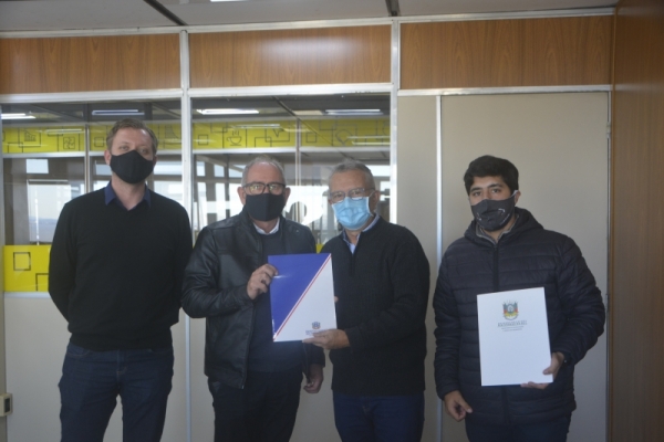 Na última semana o prefeito Rudinei Härter cumpriu agenda em Porto Alegre na Secretaria Estadual de Articulação e Apoio aos Municípios acompanhado pelo secretário especial de Gabinete Cristian Iepsen. O prefeito e o secretário foram recebidos por Luiz Carlos Busato, secretário da pasta.