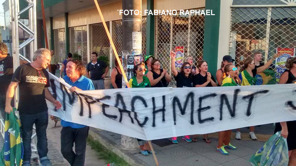 Aconteceu na tarde desta quinta-feira (17) o ato de protesto contra o momento político em que vive o país reinvidicando o impeachment da presidente Dilma Roussef (PT). Várias pessoas protestaram em frente a loja Afubra com faixas, apitos, camisetas do brasil e cartazes.