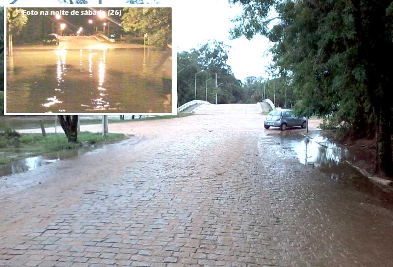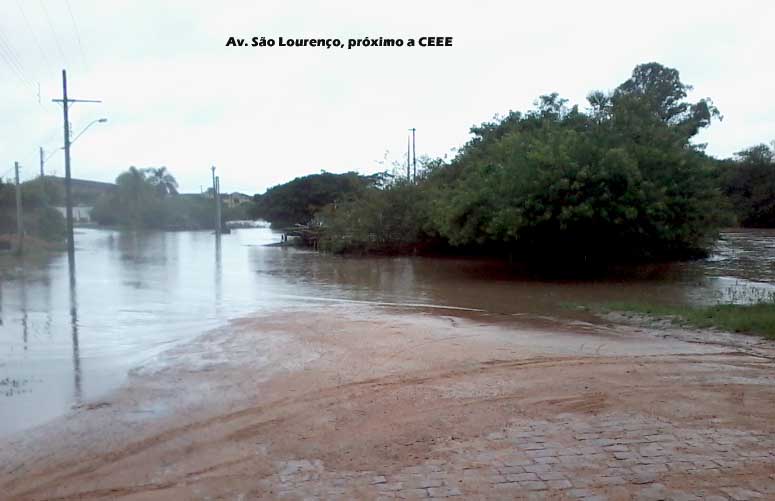 O nível do arroio São Lourenço amanheceu mais baixo. A correnteza que leva as águas para a lagoa ajudou, assim como o vento que as empurra. Agora pela manhã ainda chove fraco e em alguns pontos da cidade as águas ainda não baixaram como pode-se ver nas fotos da matéria. Também em outras ruas próximas ao leito do arroio continuam alagadas. Neste momento são 10 pessoas no abrigo mantido pela Prefeitura. O nível do Rio São Lourenço continua baixando lentamente. Defesa Civil monitora nas margens do arroio.