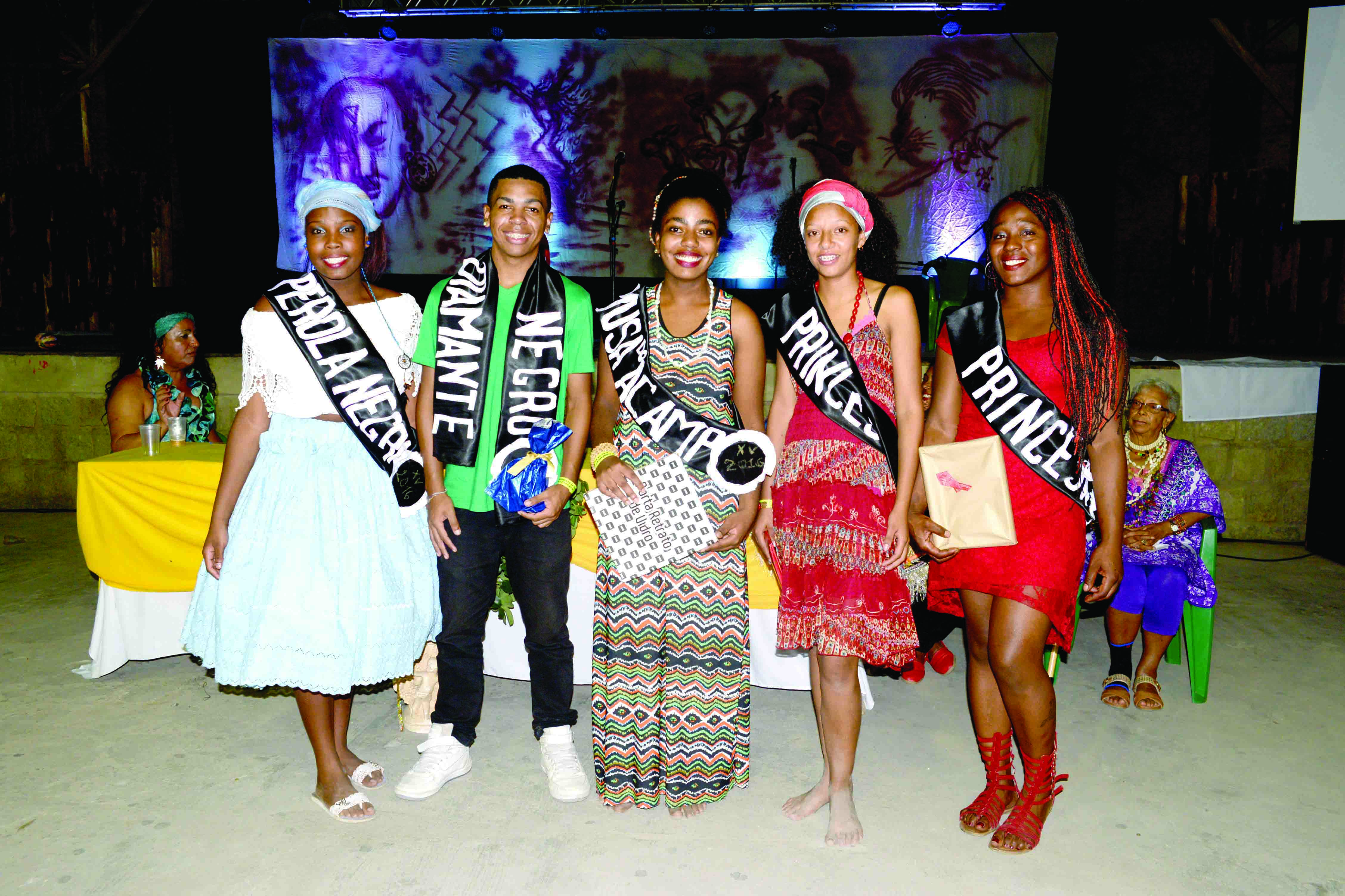 * CORTE eleita sábado à noite no Galpão Crioulo: HILARY SANTOS, Pérola Negra, ROGER DANIEL, Diamante Negro, TATIANE DUARTE, Musa, JULIANA SILVEIRA, 1ª Princesa e ANDREZA DUARTE, 2ª Princesa. (Fotos: S2 Foto e Vídeo)