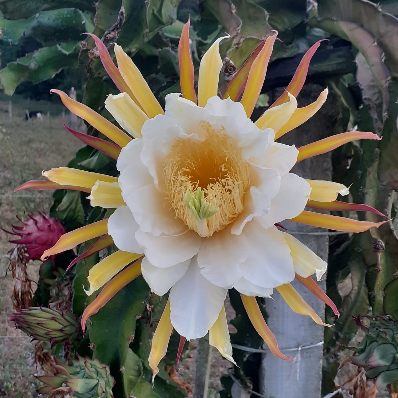 Integrante do roteiro Caminho Pomerano, o Sitio Terra da Pitaia, localizado em Monte Alegre, 6º distrito, iniciou a colheita da fruta da estação, a pitaia. No sitio também tem lindos artesanatos que são comercializados. Atualmente a propriedade rural possui cerca de 300 pés de pitaias, divididas em 100 postes e com oito variedades da fruta, sendo: branca comum, vermelha comum, Cebra, Orejona, Nicarágua Gigante, Golden, Baby e a Vietnamese White (única auto fértil), oriundas de países como Vietnã, Israel e Nicarágua. Com inicio da colheita o visitante pode visitar e conhecer o sitio, seguindo a sinalização através da RS 265, em direção a localidade de Boa Vista, e a visita pode ser agendada através do site www.caminhopomerano.com.br A agência Maria Faceira organiza passeio em grupo para quem busca conhecer o Sítio Terra da Pitaia e outras atrações do Caminho Pomerano, mais informações através do (53) 99101.3821 e 98467.8816. Divulgação: RuralidadesSul