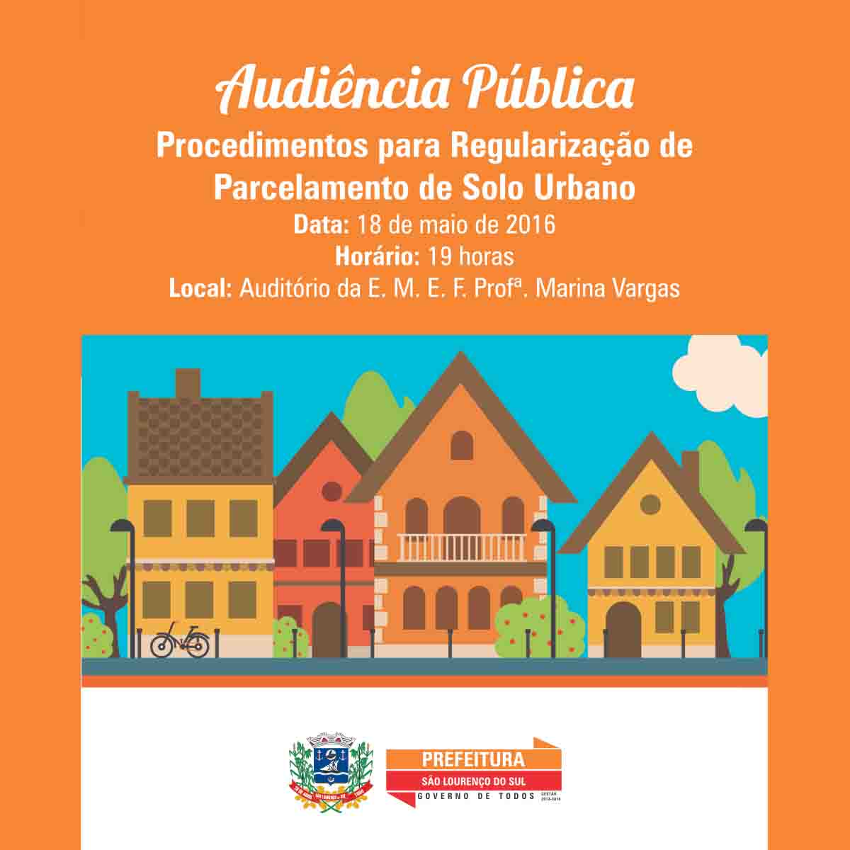A Prefeitura instituiu através do Decreto Nº 4.094/2014, a Comissão de Regularização Fundiária, grupo que tem como objetivo encontrar mecanismos de regularização jurídica dos loteamentos irregulares existentes em São Lourenço do Sul, para que os proprietários dos lotes possam registrar seus títulos de propriedade no Cartório de Imóveis. Para orientar a comunidade lourenciana sobre o processo de regularização do parcelamento do solo urbano, a comissão promove uma audiência pública na noite de quarta-feira (18), a partir das 19 horas, no auditório da E. M. E. F. Profª. Marina Vargas.