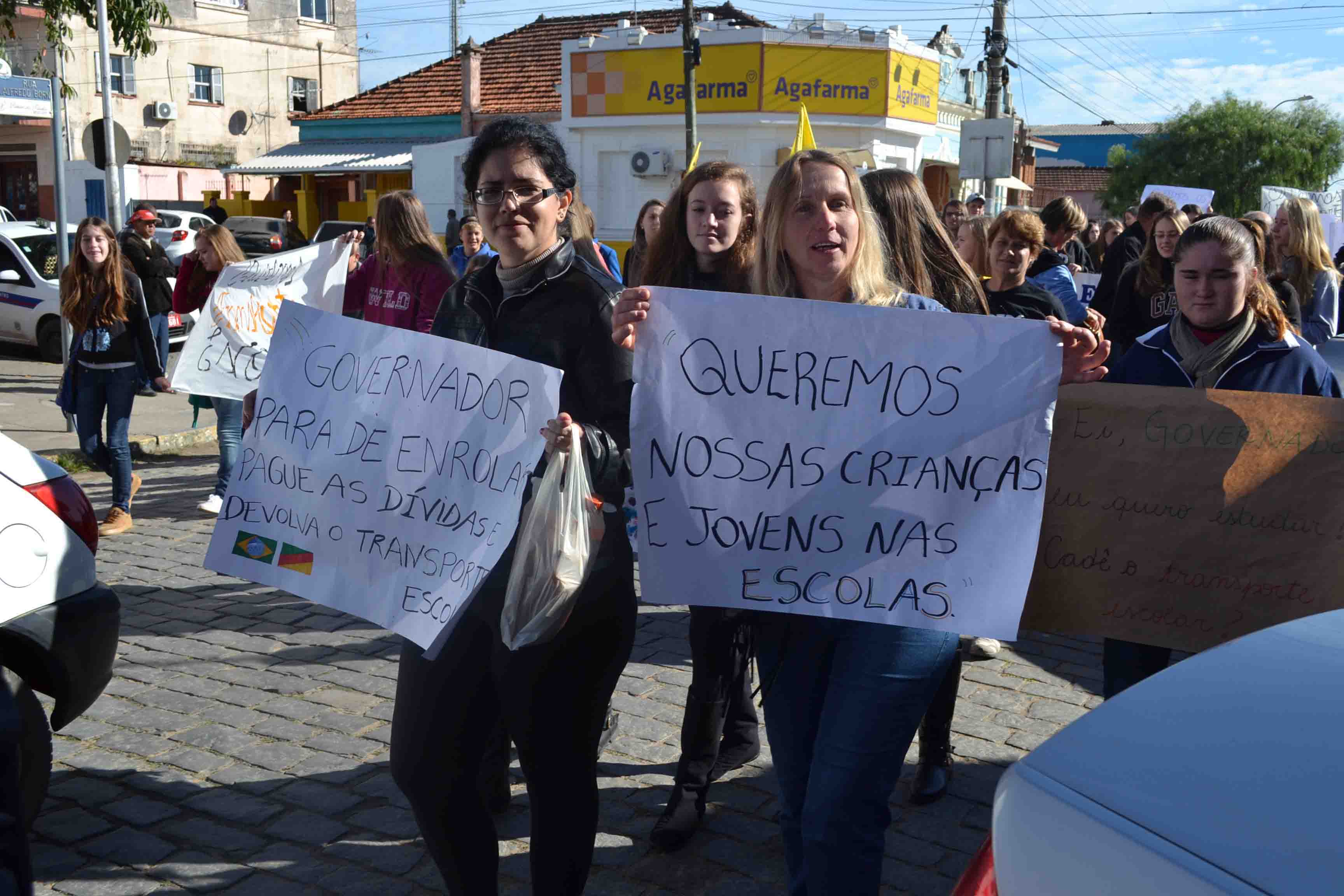 * NA ÚLTIMA 5ª feira (2) por volta das 10 h, aconteceu uma passeata pelo centro da cidade promovida pelas escolas Rodolfo Bersch, Padre José Herbst, Walter Thofehrn e cpers, contra a falta de transporte escolar e parcelamento dos salários dos professores. A saída ocorreu em frente à Afubra, subindo a Alfredo Born até a Prefeitura onde ocorreram várias manifestações contra o Governo Sartori. Há três semanas que as escolas estaduais estão sem aulas por falta de transporte escolar.