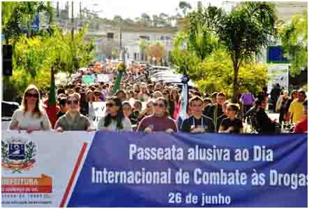 A Prefeitura, através da Secretaria Municipal de Educação, Cultura e Desporto (SMECD) realizará, na segunda, dia 27 de junho, uma passeata alusiva ao Dia Internacional de Combate às Drogas. A atividade contará com a participação das escolas e outras entidades beneficentes do município. A Secretaria Municipal de Educação destaca a importância do trabalho das escolas acerca da discussão da temática drogas e através desta ação visa chamar a atenção da comunidade lourenciana para a prevenção do uso de drogas.