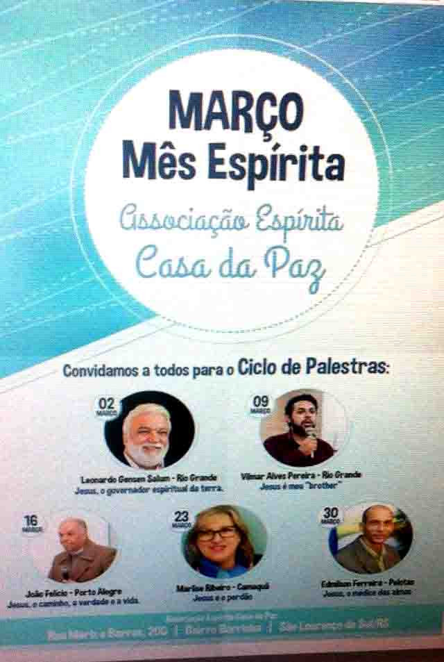 PROGRAMAÇÃO DO MÊS ESPÍRITA- CASA DA PAZ-MARÇO DE 2017
