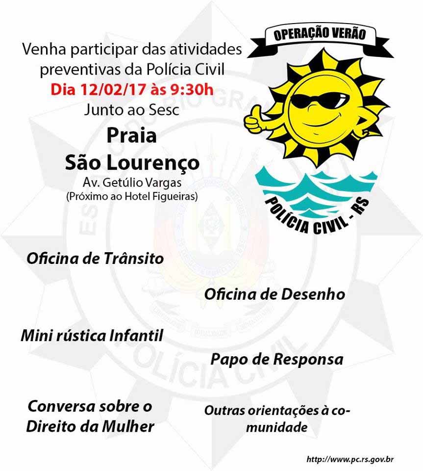 A Polícia Civil convida a todos para participar das atividades de verão na Praia das Nereidas.