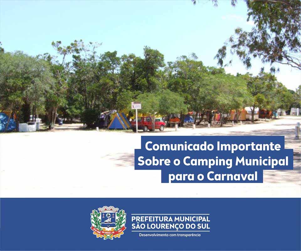 A Prefeitura municipal informa que o Camping Municipal de São Lourenço do Sul encontra-se em funcionamento com limite máximo de ocupação de 2.250 usuários, de acordo com a Autorização Geral Nº00424/2016-DL da FEPAM.