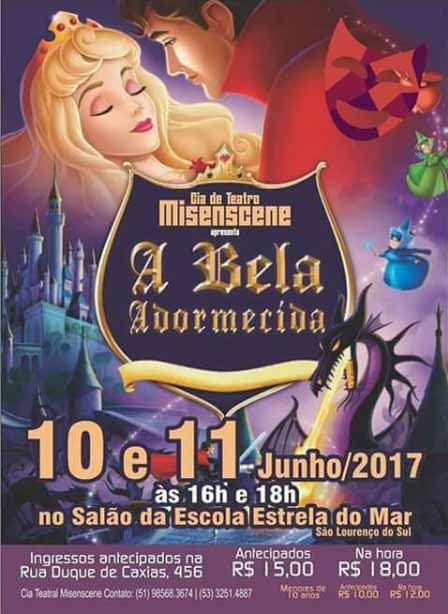 A Companhia Teatral Misenscene convida a todos para assistir seus dois novos espetáculos. Com estreias nos dias 10 e 11 de junho, no salão da Escola Estrela do Mar, e sessões às 16h, às 18h e às 20h 30m, em ambos os dias. O primeiro espetáculo será uma adaptação de “A BELA ADORMECIDA”, e é direcionado ao público infantil, garantindo diversão para a família inteira. Ingressos antecipados a R$15,00 (inteira), R$10,00 para crianças de até dez anos de idade e entrada franca para crianças de até dois anos. Os ingressos estão disponíveis na Rua Duque de Caxias nº 456, ou pelos fones 3251 4887 e (51) 985 683 674 e no local, nos dias das sessões. O segundo espetáculo apresenta uma inusitada performance artística. Desta vez, a Misenscene destaca-se por sua originalidade em provocar seus expectadores para uma reflexão acerca da existência humana e suas facetas: A performance LIBERTEM A LIBERDADE, com indicação para o público adulto, pretende fazer uma reflexão acerca do cotidiano de nossas vidas, e tem o caráter de um projeto novo e diferenciado. Com uma roupagem polêmica, aborda diversas problemáticas sociais e culturais. LIBERTEM A LIBERDADE propõe uma perspectiva em torno de “questões em aberto”, acerca de conflitos e de escolhas com diferentes maneiras para o seu enfrentamento, como a quebra de tabus que estão cristalizados em nossa sociedade. Os ingressos promocionais ao valor de R$5,00, tem a proposta de atrair um público diversificado e busca oportunizar o seu acesso ao espetáculo. A Cia. Teatral Misenscene conta com o apoio do JORNAL O LOURENCIANO e tem o patrocínio da FERRAGEM, CAMPING E PESCA COMERCIAL DA PRAIA, SALÃO TOK ATUAL e ANTÁRDIDA REFRIGERAÇÃO. Adquira já o seu ingresso e ajude a fomentar a cultura em São Lourenço do Sul.