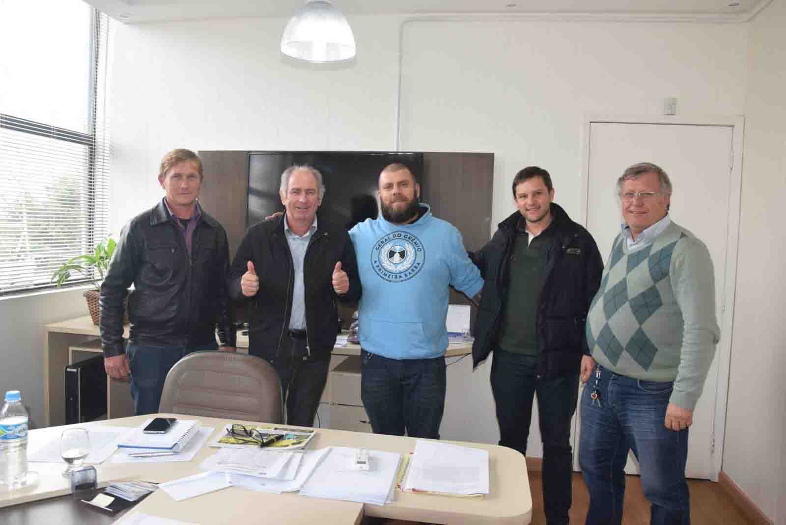 O representante do Consulado do Grêmio em São Lourenço do Sul, Gustavo Hammes, esteve nesta quinta-feira (8) no gabinete do prefeito Rudinei Harter para convidar para o jantar de aniversário do consultado, que será no dia 16 de junho às 20h na AABB.