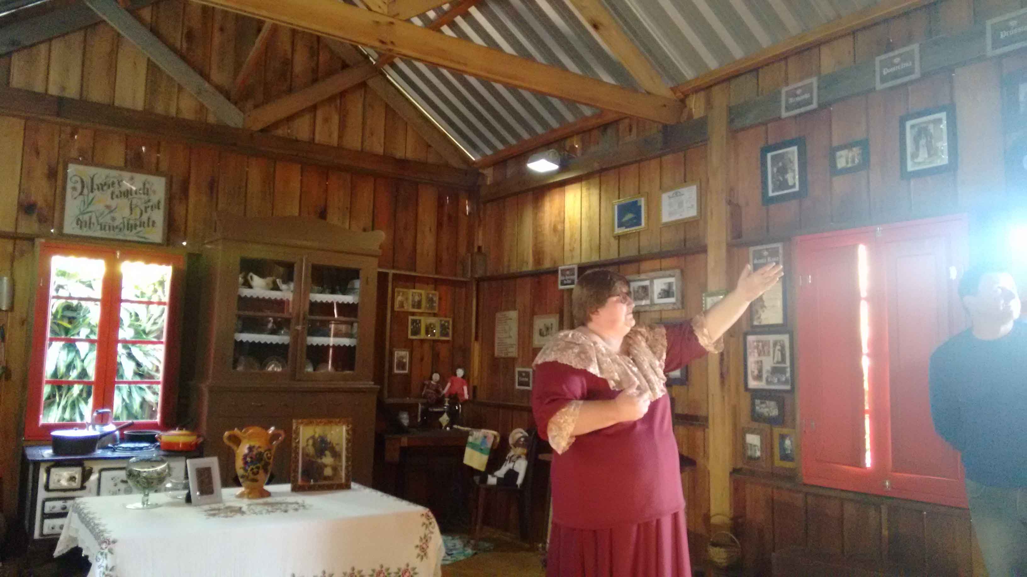 A casa, onde funciona o “Memórias und Andenken”, também é um resgate dessa história. Foi construída ao lado do antigo galpão especialmente para o novo local que agora funciona como uma espécie de museu da imigração pomerana, ao recompor os ambientes tradicionais de outra época.