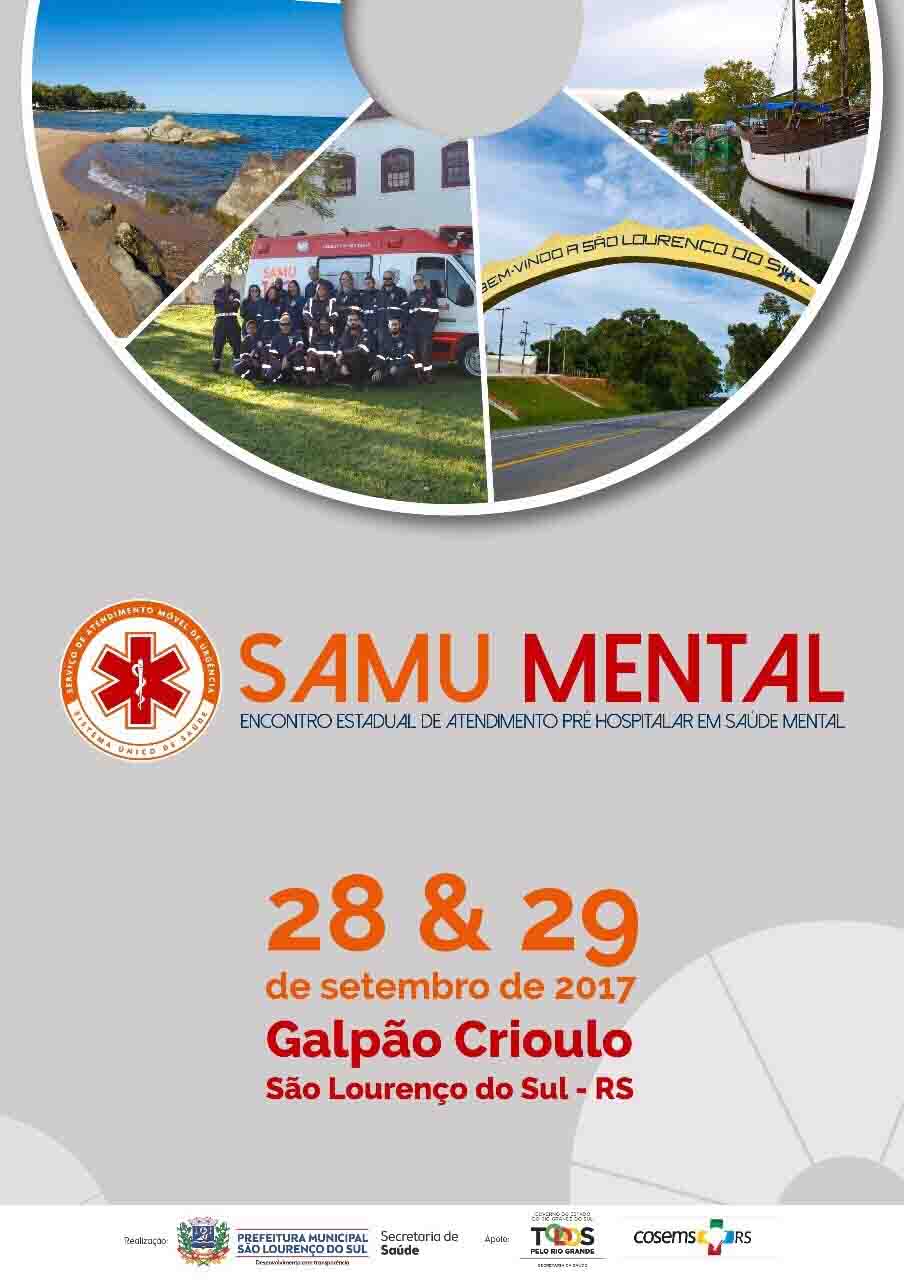 O município de São Lourenço do Sul está promovendo o “Encontro Estadual de Atendimento Pré-Hospitalar em Saúde Mental – Samu Mental”. O evento será realizado nos dias 28 e 29 de setembro, no Galpão Crioulo do Camping Municipal de São Lourenço do Sul. Já está confirmado a presença do SAMU de Brasília.