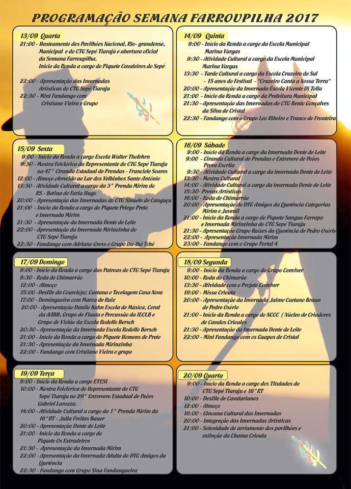 Confira a programação Farroupilha do CTG Sepé Tiaraju