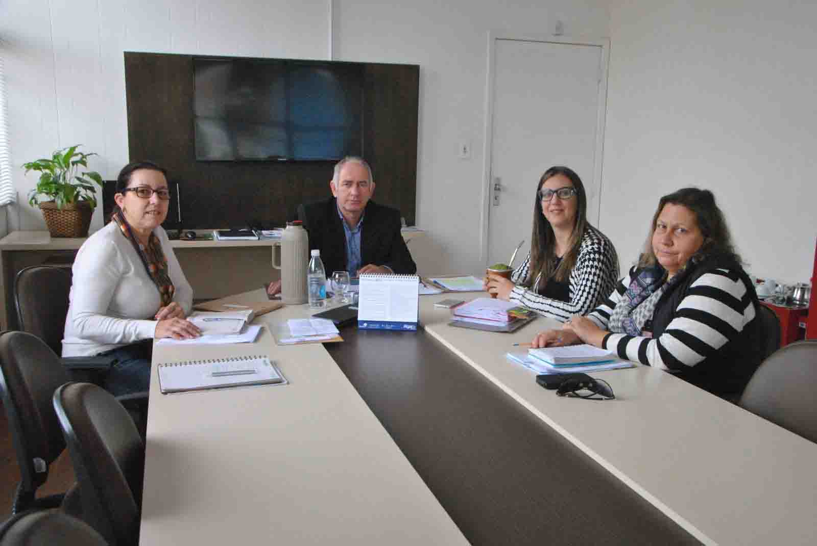 Nesta quarta-feira (30) estiveram no gabinete do Prefeito Rudinei Härter, a Secretária Adjunta da SEPLAMA Silvia Machado, Secretária Adjunta da Educação, Cultura e Desporto, Cris Hax, a Coordenadora da Vigilância Sanitária, Adriane Vargas e a Coordenadora de Comunicação Aline Cunha, para tratar sobre uma oportunidade para o Município voltado às ações de educação em Saúde Ambiental, visando o enfrentamento ao vetor (Aedes Aegypti) transmissor da dengue, zika e chikungunya.
