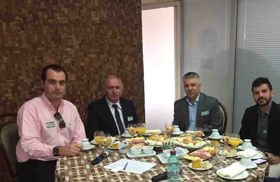 Na foto o prefeito junto do representante do Deputado Giovani Cherini, Rodrigo Boesche, prefeito de Tapes, Silvio Rafaelo e seu assessor Voltaire Santos, e a prefeita de Turuçu, Selmira Fehrenbach.