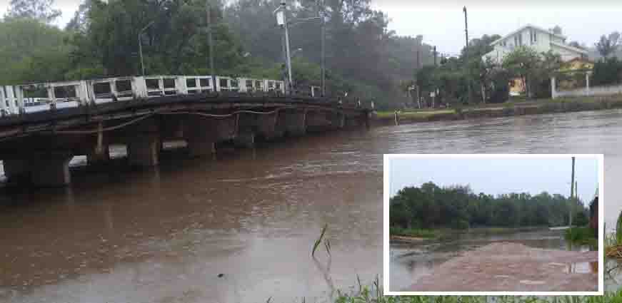 Com as fortes chuvas que vem caindo desde a última quarta-feira (11), o nível das águas do arroio São Lourenço subiu consideravelmente, saindo do leito em alguns pontos da Av. São Lourenço. Em outros bairros da cidade (como a Sete de Setembro) as águas represaram nas ruas dificultando a passagem de veículos e a locomoção dos moradores. A previsão ainda marca chuva para esta sexta-feira (13). Foto Vanessa Bartz