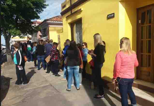 Na manhã desta terça-feira dia (24) uma longa fila formou-se pela rua Alm. Abreu( a partir do escritório do SINE) dobrando pela Mal Floriano, até a Escola Padre José Herbst. Era para a entrevista dos 90 inscritos para as 14 vagas abertas pela Lojas Americanas que abrirão em novembro em nossa cidade, na rua Alfredo Born, em frente ao Clube Comercial.
