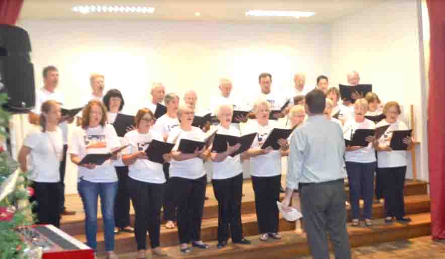 Participaram os Corais das comunidades Nossa Sra. Aparecida São Jose e Navegantes, da Igreja Católica. Também os corais da Igreja Evangélica Luterana do Brasil e Três de Maio da IECLB. O aplaudido evento, que lotou o salão Três de Maio, foi coordenado pelo Pastor Artur Presser.