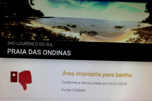 SEGUNDO A FEPAM, no dia 3 de janeiro de 2018 a Praia das Ondinas, em São Lourenço do Sul estava IMPRÓPRIA para o banho.