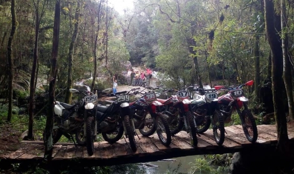 O 1º Encontro de Trilheiros de São Lourenço do Sul, realizado neste final de semana pelo grupo lourenciano “Fuça Mato”, superou todas as expectativas de organização e público, reunindo cerca de 2 mil pessoas e mais de 450 motos inscritas. O evento, que era aguardado ansiosamente por quem pratica o esporte em nossa cidade e região, foi um grande sucesso. Com a organização do Grupo de Trilheiros Fuça Mato, sob a presidencia de Emerson Ferreira (Mercinho), o trilhão promete dar sequência já no ano que vem, visto o número de pilotos que participaram da trilha. O número de inscritos chegou a mais de 450 motos, em um percurso de 70km pela colônia de São Lourenço, saindo da Coxillha do Barão, com direito a Café da manhã e almoço. Os trilheiros do Fuça Mato estão de parabéns pela grandeza e organização do evento que movimentou o domingo em nosso município e todos torcemos para que eventos desse porte sejam realizados em São Lourenço. Foto Luis Behling