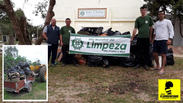 No último domingo (16), dia Mundial da limpeza de rios e praias, funcionários e sócios do Iate Clube de São Lourenço do Sul fizeram a sua parte às margens do Arroio São Lourenço, nos arredores da sede do clube. Foram mais de 100 sacos de lixo, de 100 litros, recolhidos na área do clube e também pela água com auxílio de veleiros e outras embarcações. Pela iniciativa os organizadores da ação estão de parabéns!!