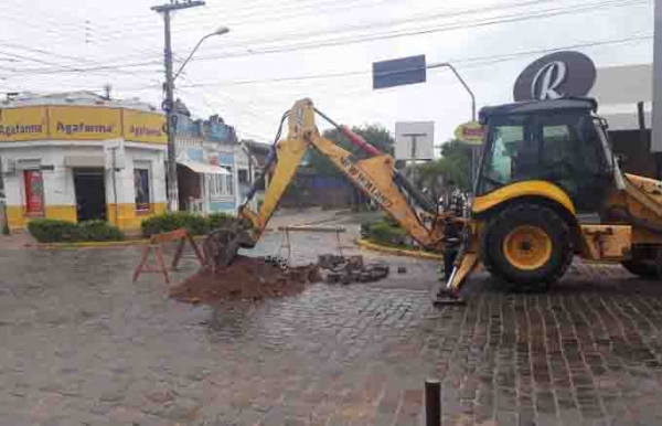 * NA ESQUINA da rua Alfredo Born com Mal. Floriano um buraco, há três semanas, causava danos nos veículos e dificultava o trânsito no ponto mais central da cidade. Nesta segunda-feira (17) a SMOU, através de seu titular DELCIO ANDERSEN, começou a solucionar o problema fechando o reclamado buraco. Ainda existem alguns em pleno centro da cidade mas com certeza breve serão fechados.