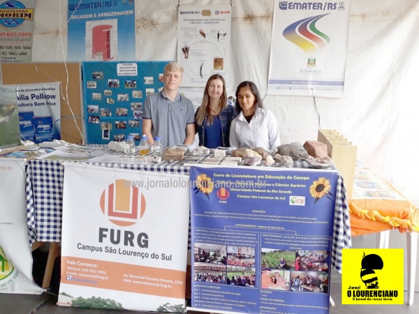 Entre os dias 27 e 30 de Setembro, em São Lourenço do Sul, ocorreu a 40° Expofeira no Parque de Exposições Cel. Antônio Cândido Soares Ferreira. Nessa ocasião o Campus SLS e a Emater/RS-Ascar organizaram de forma conjunta um estande na tenda da Agricultura Familiar com atividades educativas referente ao tema “Qualidade da Água”.