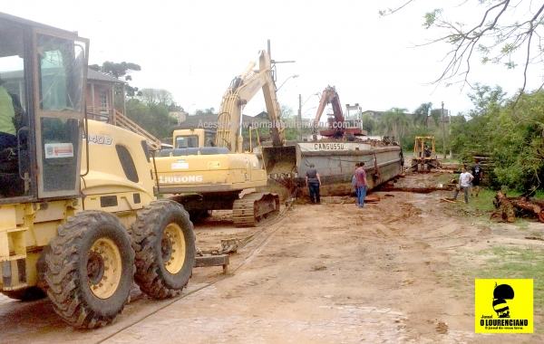 Segundo o Secretário da SMOU, a draga que está sendo transferida através de roletes, por terra, do lado esquerdo da ponte que leva para o Camping para o lado direito, deverá chegar ao seu destino nesta quarta-feira (10). Nosso entrevistado esclareceu que é um trabalho moroso e por isso será realizado na noite desta terça-feira ou na manhã de quarta-feira para não interromper o tráfego sobre a ponte do Arroio São Lourenço. Durante o período que a draga trabalhou, em alguns meses, foram retirados do arroio mais de 3.000 m3 de areia, correspondendo a mais de 300 caminhões. O material retirado das águas do arroio foi levado para obras do município.
