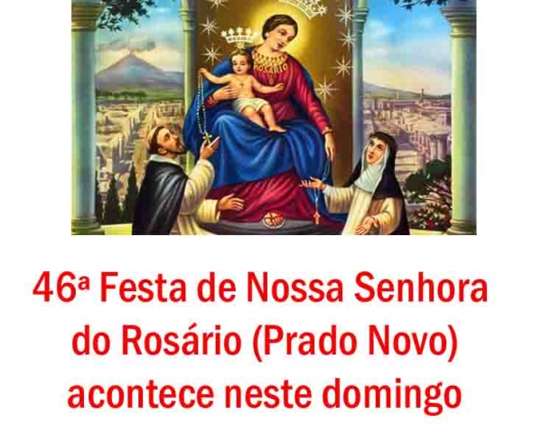 14 DE OUTUBRO – DOMINGO - 10h – Missa Solene; 12h – Almoço com churrasco, frango, saladas, doces e bem sortida copa; À tarde haverá jogo da roleta e reunião dançante animada pela super Banda Estrela. Haverá sorteio entre as comunidades e festeiros presentes. José Valdor e Maria Emília Soares Moura - Casal Festeiro; Letícia Thiel Bosenbecker - Rainha; Hellena Furtado Rodrigues - Minirrainha; Cleusa Maria Soares Paulsen - Coordenadora. Pe. Wilfrido Mosquera – OSFS - Pároco; Pe. Wilner Charles – OSFS e Valmir Silva - Vigários.