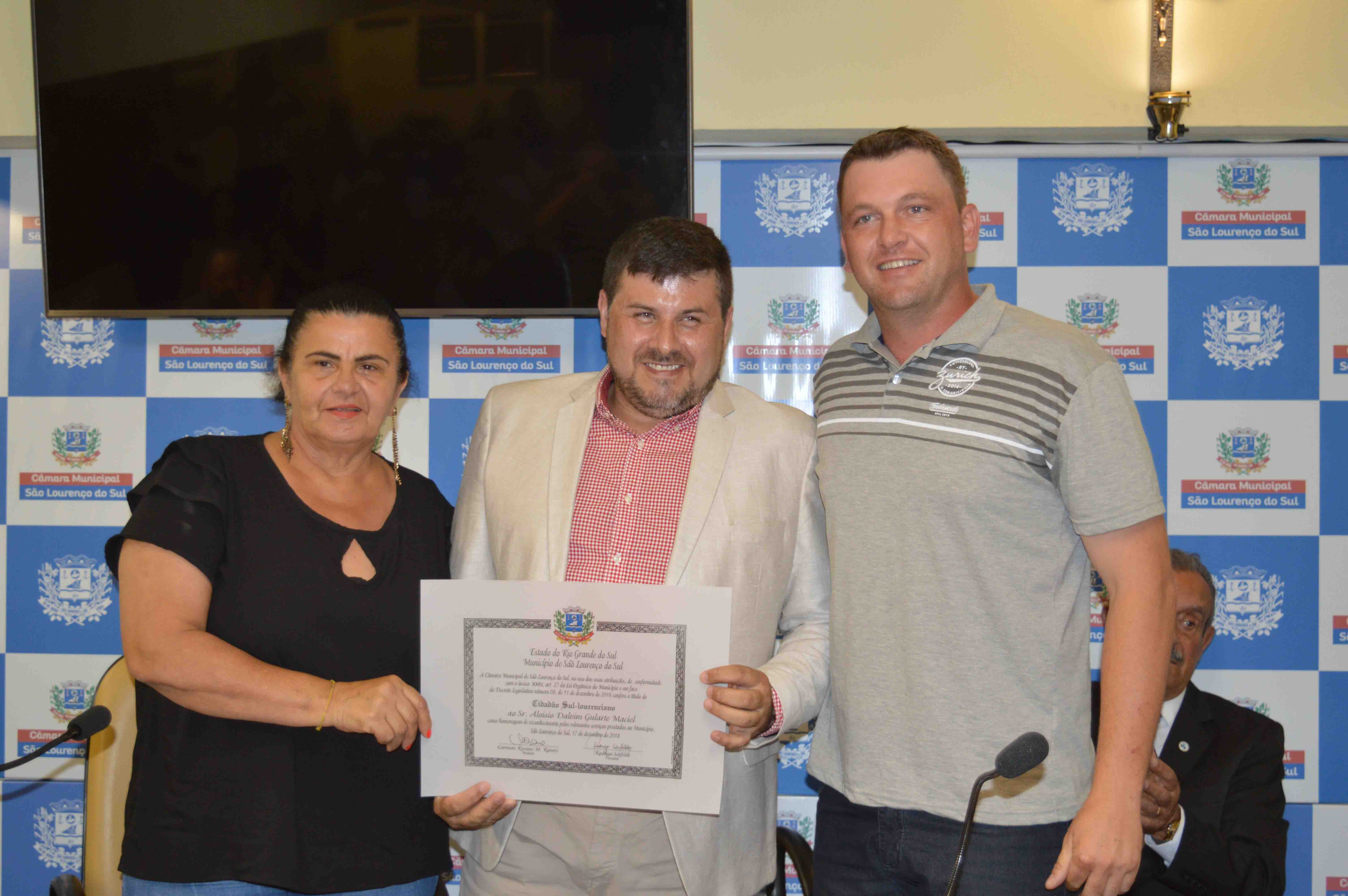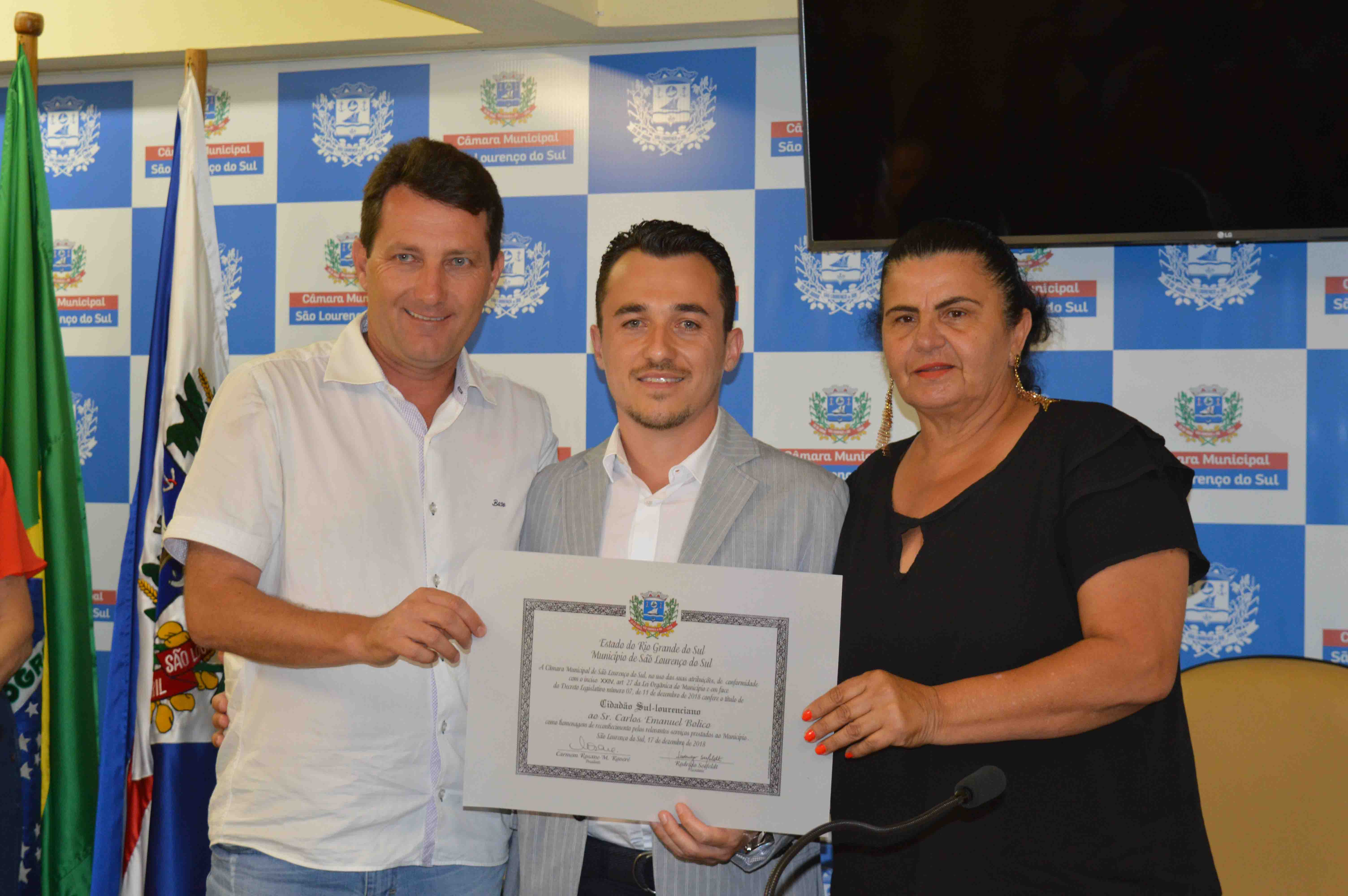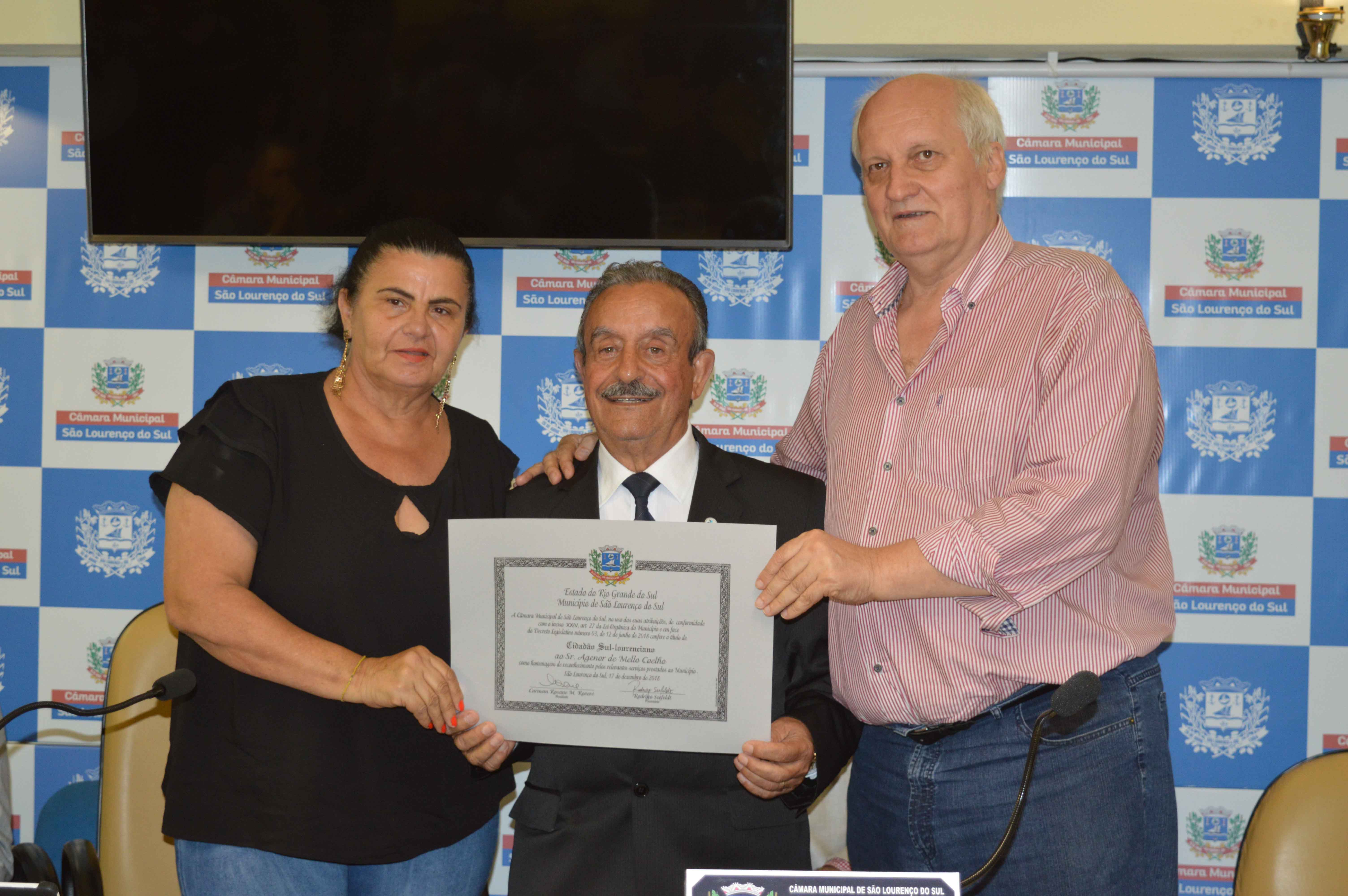ALOISIO DALVIM GULARTE MACIEL, e CARLOS EMANUEL BOLICO, forma indicados pelos vereadores: Adrean Oswaldt Peglow (PSDB) e Matias Hornke Fromming (PSDB). O titulo de “Cidadão Sul-Lourenciano” ao senhor Agenor de Mello Coelho foi proposto pelo vereador Dari Pagel (P). As indicações foram aprovadas por todos os vereadores do legislativo.
