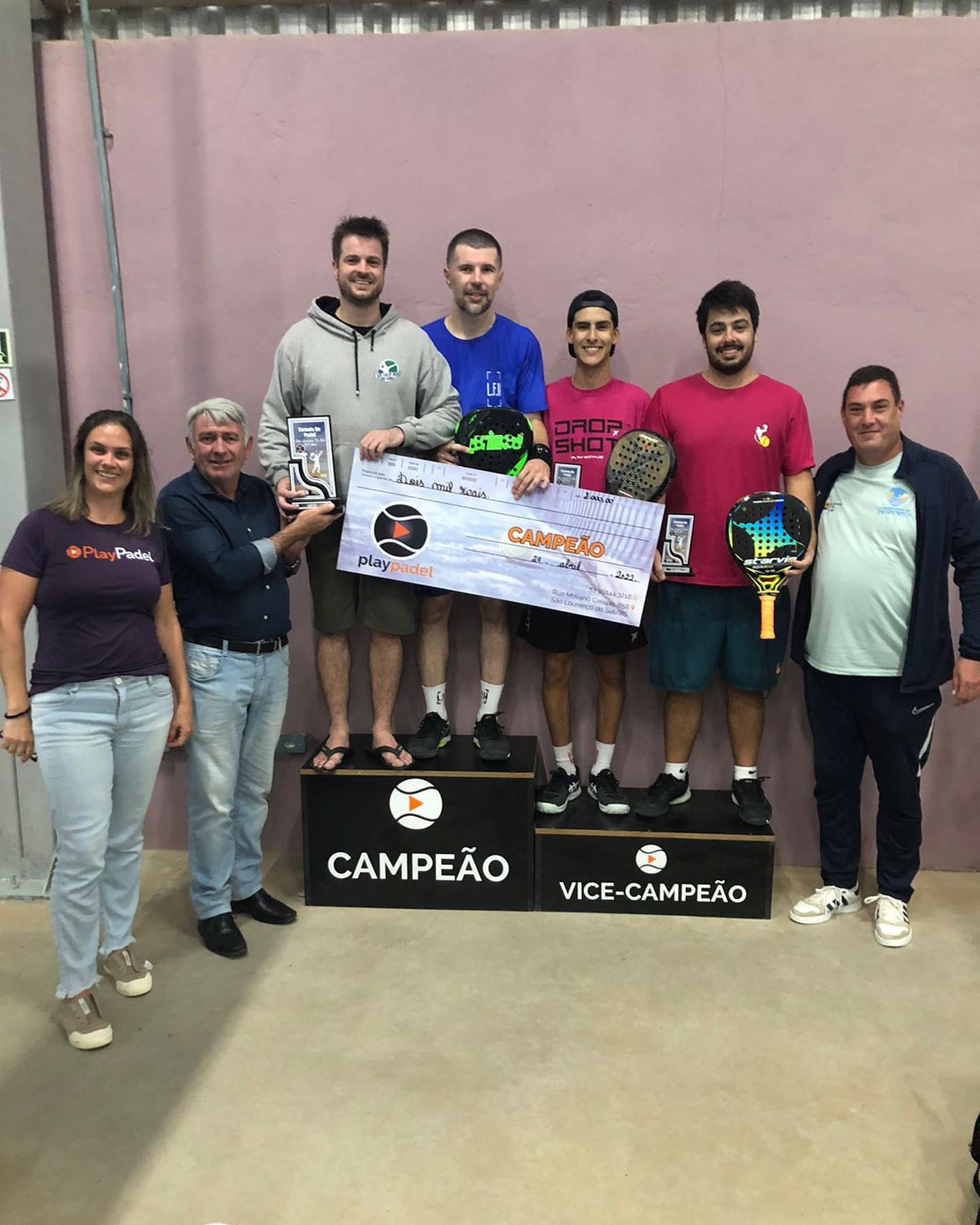 Na noite deste domingo o Prefeito Rudinei Harter realizou a entrega da premiação em dinheiro, no valor de R$ 2 mil aos campeões do torneio de Padel, da categoria Open. O evento esportivo fez parte da programação de atividades em homenagem aos 128 anos de São Lourenço do Sul. Os jogos foram realizados no Play Padel e apoiado pela Prefeitura Municipal, através da Coordenadoria de Desporto. Na ocasião o coordenador de Desporto, Felipe Lobato também esteve presente no encerramento do torneio.