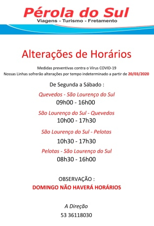 A empresa Pérola do Sul teve seus horários reduzidos em razão da epidemia do coronavírus.