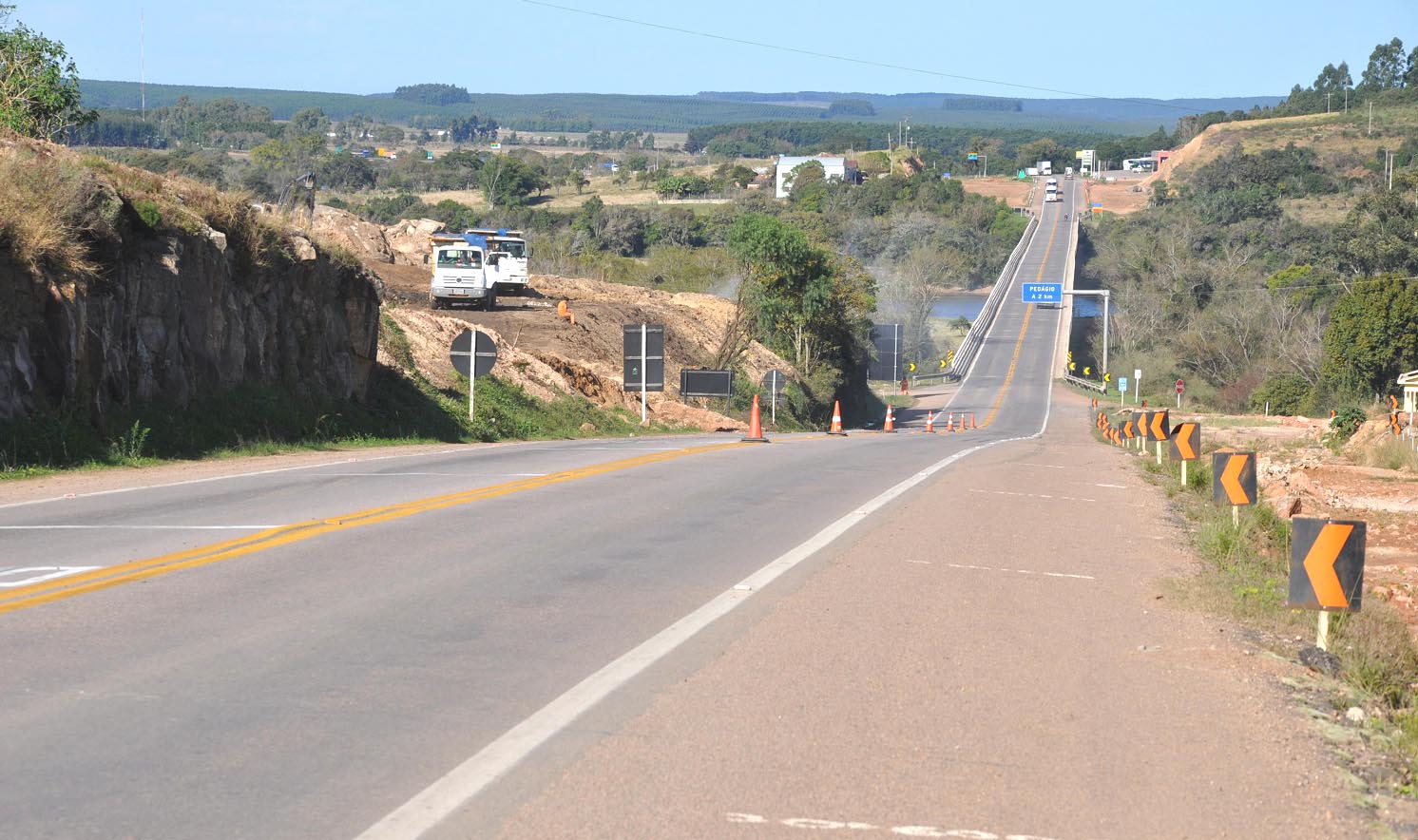 * O consórcio Pelotense/CC, responsável pelo lote 06 das obras de duplicação da BR-116/RS, informa que por questões de logística foi cancelada a interdição de pista programada para este sábado (12/07) no km 428, em Cristal. Segue mantida a programação de interrupções de tráfego, em ambos os sentidos, nas terças e quintas-feiras, das 15h às 16h. A partir da próxima semana devem ocorrer regularmente também aos sábados, das 10h às 11h. Em caso de chuva ou cerração, as atividades são suspensas. A previsão é de que os bloqueios ocorram regularmente até o final deste ano. Fonte:STE Amanda Montagna
