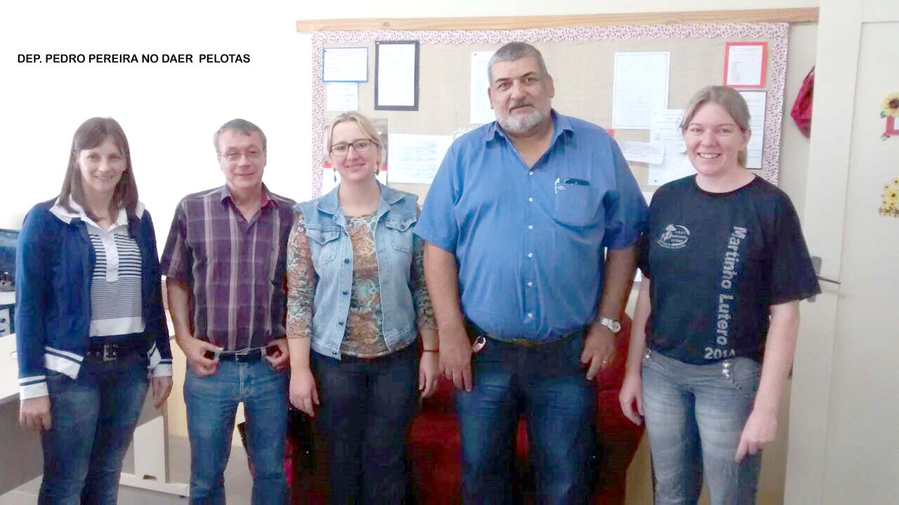 * O deputado estadual Pedro Pereira (PSDB) esteve, juntamente com o superintendente do DAER Pelotas, Luiz Antônio Teixeira, da 7ª Superintendência do órgão, e o assessor Emílio Lessa, avaliando a sinalização da RS 265. Os locais, precisamente conhecidos Comércio Rutz – localidade Posto Branco – no município de Canguçu, e, em São Lourenço do Sul, na Escola Estadual Padre Maximiliano Strauss – localidade do Boqueirão, Escola Municipal Martinho Lutero – localidade de Santa Augusta – e em frente ao posto de gasolina Ipiranga – localidade de Quevedos.