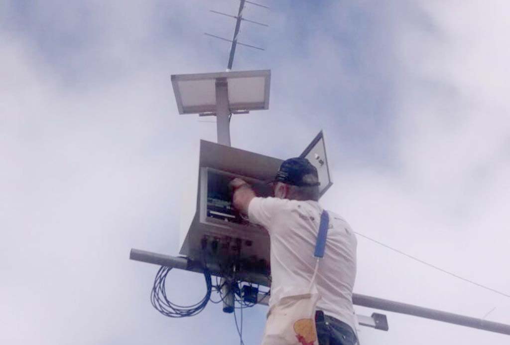 Durante a segunda-feira (27), o técnico da Sala de Monitoramento da Secretaria Estadual do Meio Ambiente, Sérgio Mozart, esteve em São Lourenço do Sul consertando a Estação de Monitoramento e Alerta de Desastres, instalada na ponte do Passo do Candombe. O técnico efetuou a troca da antena que transmite o sinal ao satélite que estava danificada. O equipamento já está funcionando novamente.