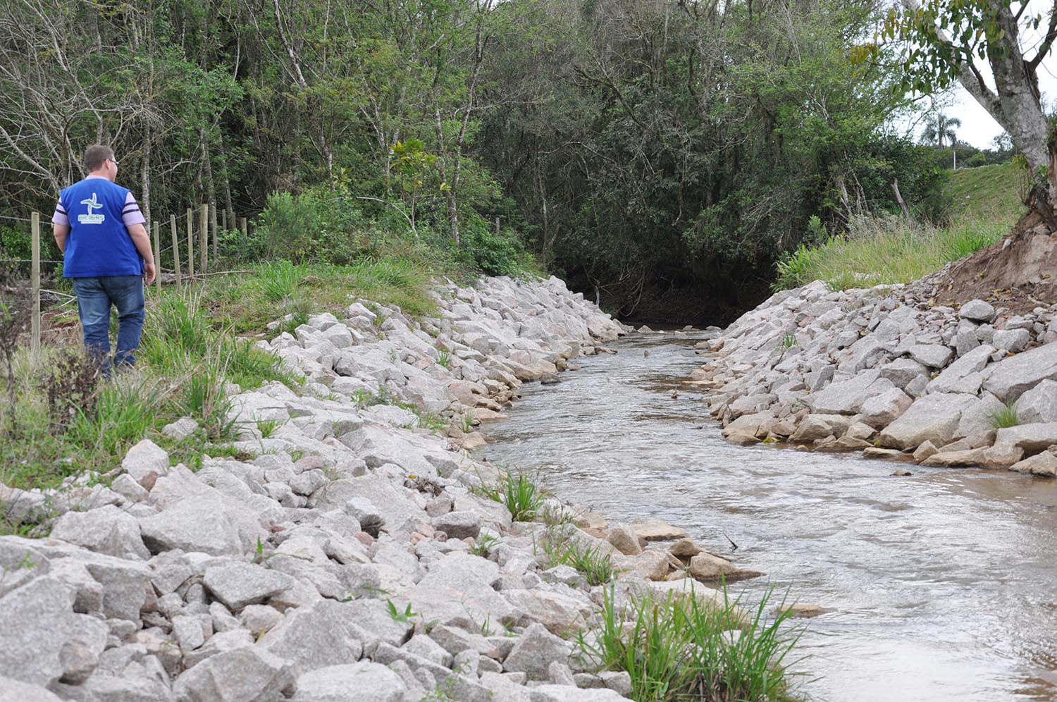 Essa atenção pode ser verificada na construção de uma galeria no km 359, em Tapes, onde construtora e Supervisão Ambiental atuaram juntas na busca por soluções. Após diversas tentativas, encontrou-se a melhor configuração para transpor o arroio devido às obras. “A proteção das margens com rochas e o enleivamento dos taludes garantiram a estabilidade”, explica o engenheiro ambiental Jackson Pilger, da STE S.A.. O fluxo da água agora corre até o encontro com o Arroio Teixeira, que fica a cerca de um quilômetro distante. O coordenador da Supervisão Ambiental, Maicon Rizzon, destaca que a medida vem sendo monitorada há aproximadamente nove meses. “Podemos afirmar que está consolidada, pois resistiu bem inclusive aos episódios de chuva acima da média em julho”.