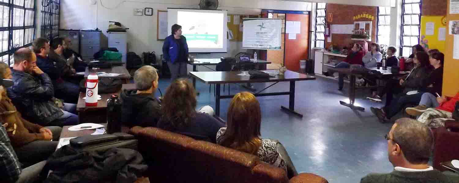 Vinte e cinco professores e funcionários da Escola Técnica Estadual Santa Isabel, em São Lourenço do Sul, passaram a manhã da última quinta-feira (27/10) atualizando seus conhecimentos sobre o Aedes aegypti, mosquito transmissor do Zika Vírus, Dengue e Chikungunya. A equipe do Programa de Educação Ambiental (PEA) da duplicação da BR-116/RS (STE S.A.) também apresentou aos participantes a Gestão Ambiental do empreendimento, compreendido entre Guaíba e Pelotas. A atividade, composta por duas palestras, ocorreu das 8h30 às 12 horas.