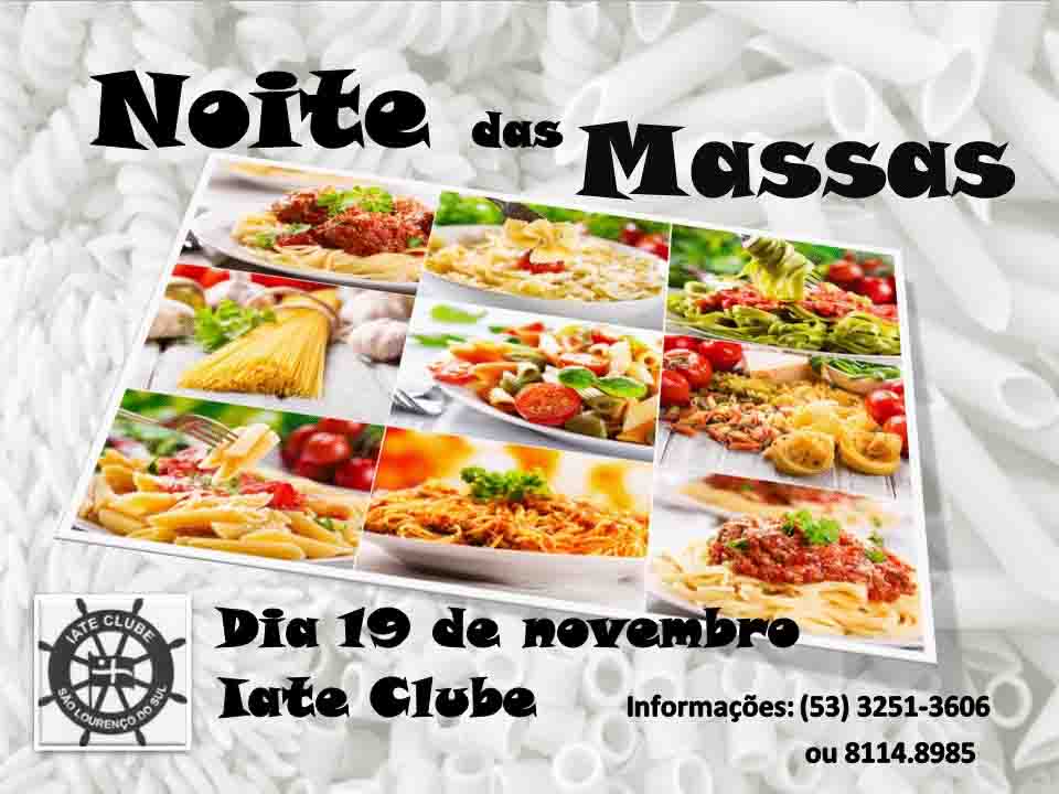 O Iate Clube de São Lourenço do Sul promove neste sábado (16) a Noite das massas. Jantar com diversos tipos de massas e lasanhas.